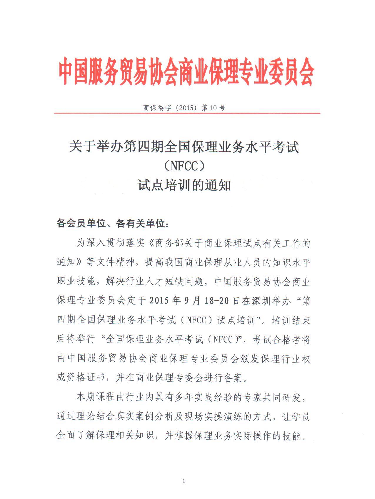 全国保理业务水平考试(NFCC)试点培训——深圳站