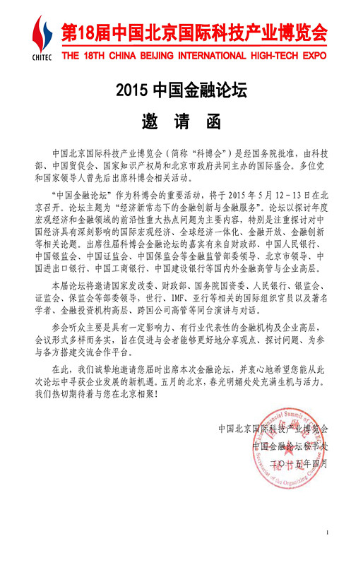中国金融论坛邀请函