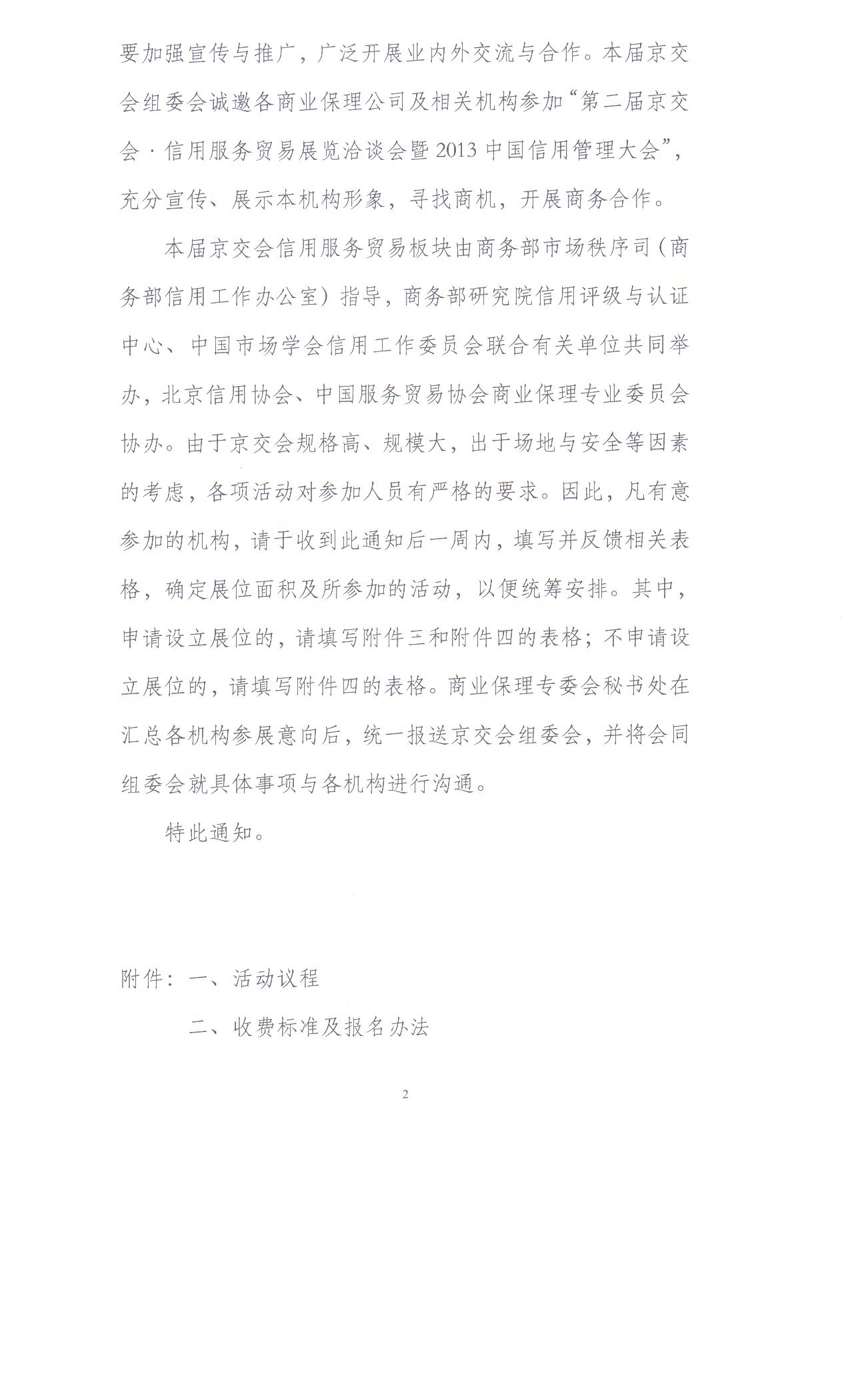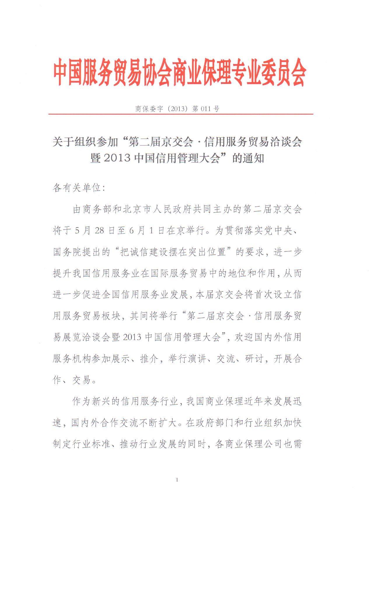 关于组织参加“第二届京交会·信用服务贸易洽谈会暨2013中国信用管理大会”的通知
