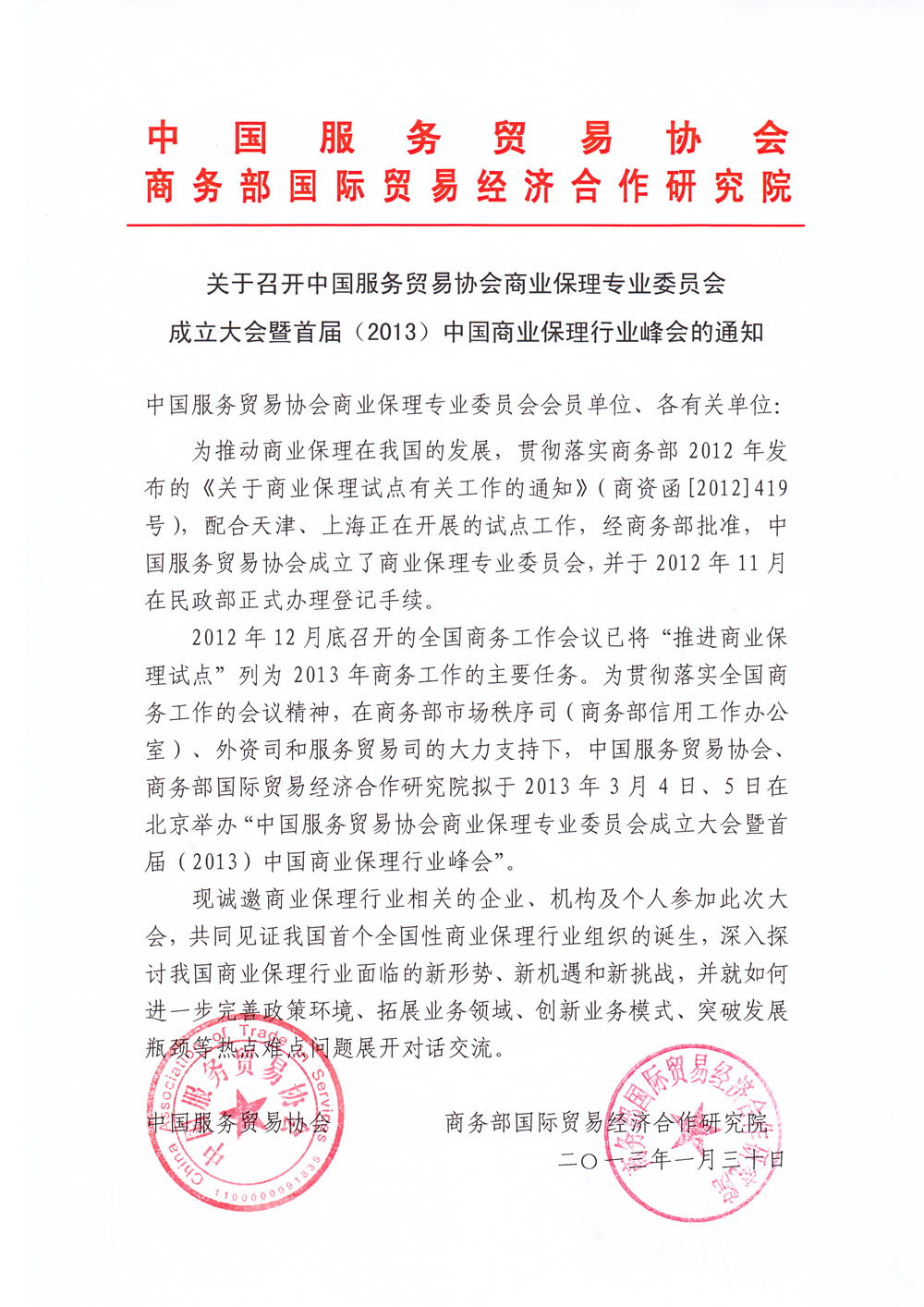 召开首届(2013)中国商业保理行业峰会的通知