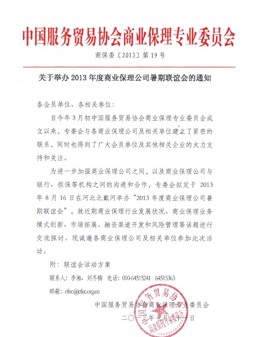 关于2013商业保理公司暑期联谊会的通知
