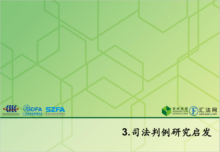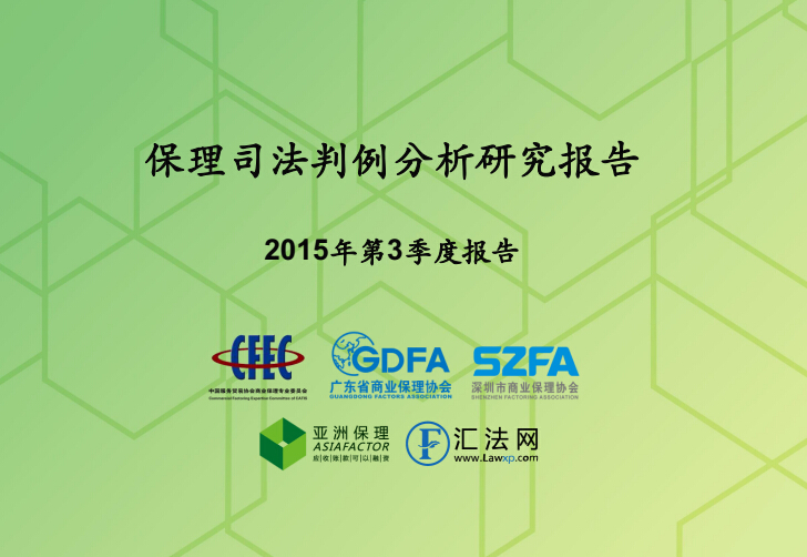从2015年第三季度开始,由中国服务贸易协会商业保理专业委员会、广东省商业保理协会、深圳市商业保理协会与亚洲保理、汇法网联合发布《保理司法判例分析研究报告》。我们在新增50多个司法判例研究的基础上,对保理判例数据进行更新及更深入的分析和总结,并新增了前沿法律研究专题,及时了解保理立法、司法的最新发展进程,以更好发挥法律利剑的作用,并继续为保理行业发展添砖加瓦,抛砖引玉。